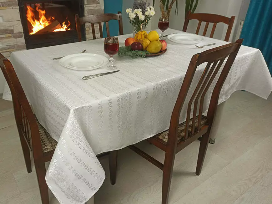 Білий тканий столовий набір 130х145 см, Без серветок
