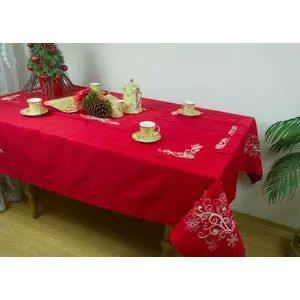 Червона новорічна скатертина з візерунком "Іній" 160х140 см