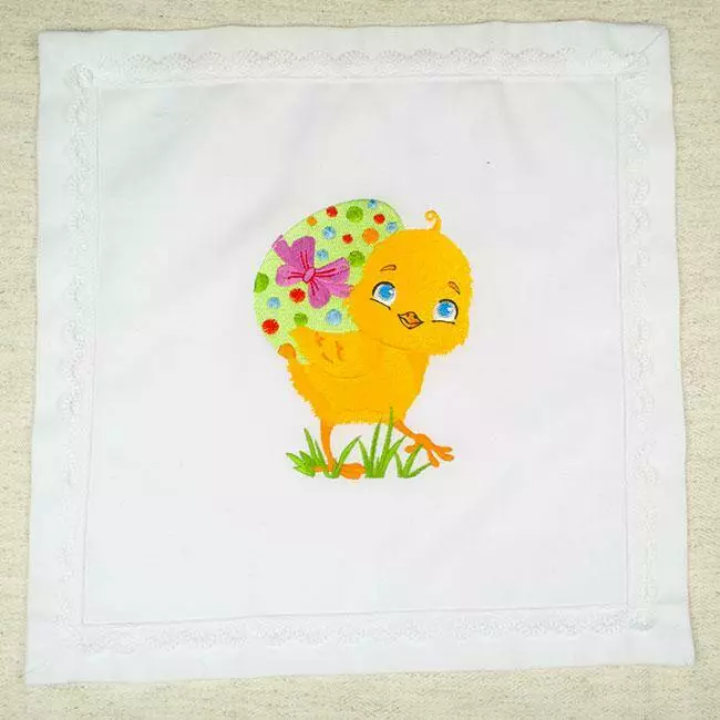 Традиція об’єднує нас із предками, укріплює рід та додає сил у подоланні питань сьогодення. Білосніжна серветка, довершена витонченим мереживом, містить яскраву вишивку гладдю. Світлого вам свята!
