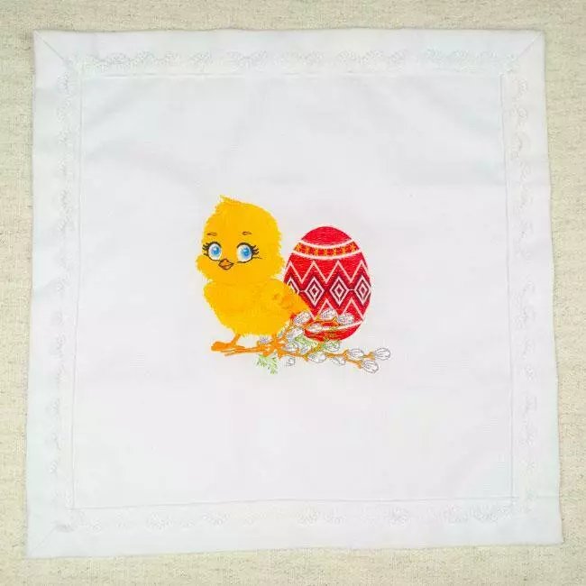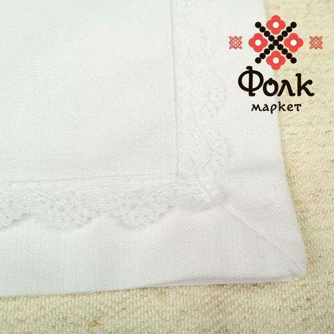 Традиція об’єднує нас із предками, укріплює рід та додає сил у подоланні питань сьогодення. Білосніжна серветка, довершена витонченим мереживом, містить яскраву вишивку гладдю. Світлого вам свята!