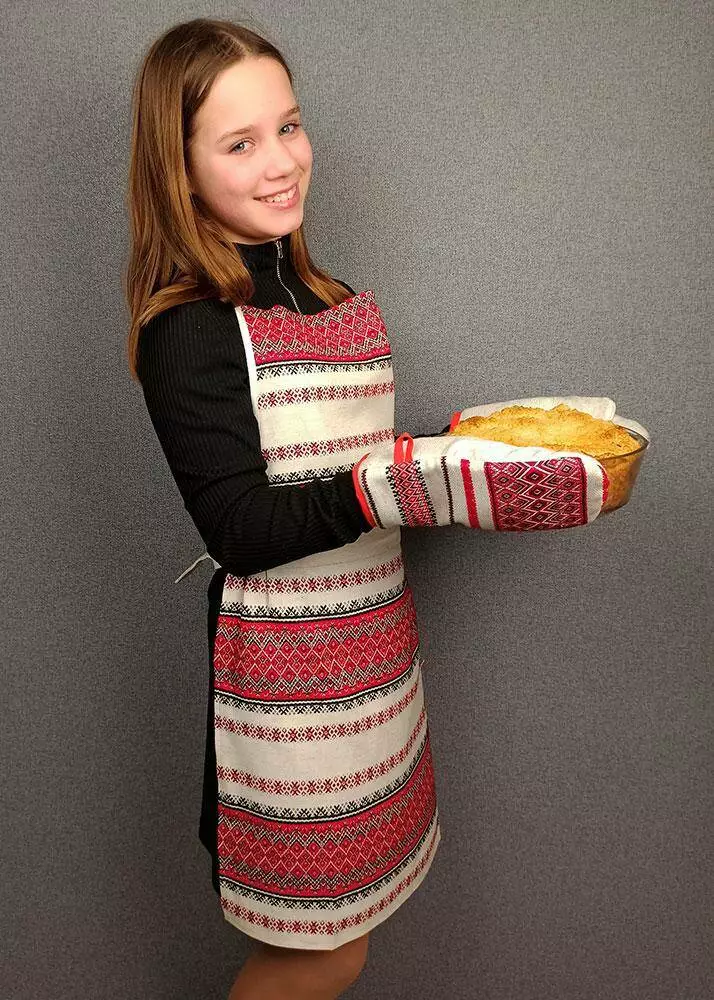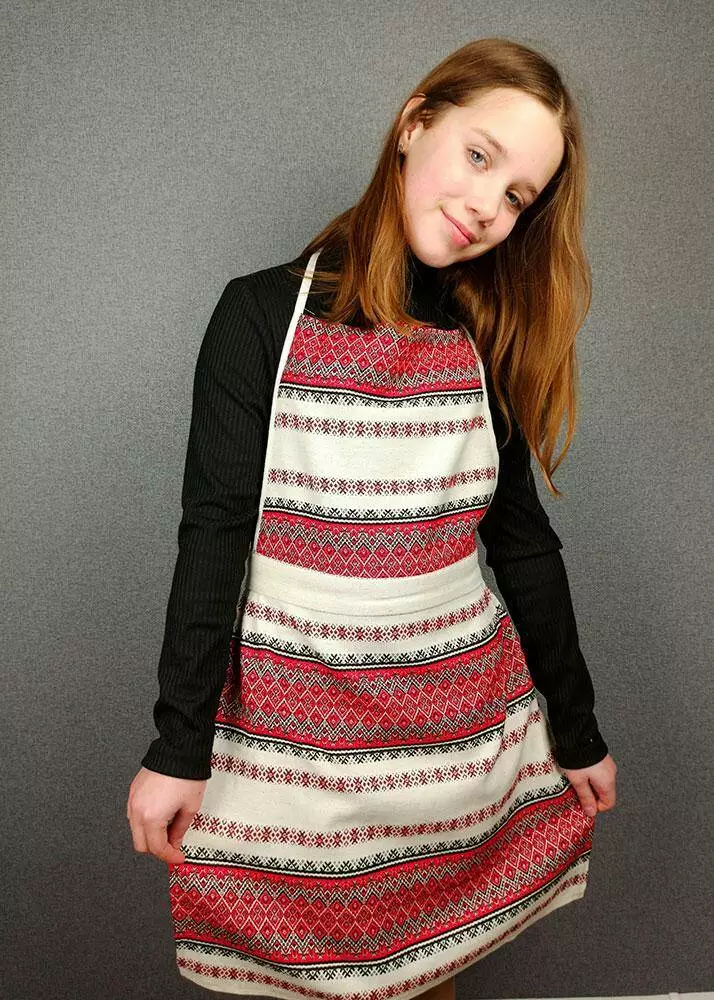 Удобный фартук из красочной льняной ткани с этническим орнаментом - мечта любой "хозяюшки", помогающей готовить яства на свадьбу!Достаточно длинные тесемки горловины (49 см каждая) и пояс (59 см с каждой стороны) позволяют произвольно регулировать размер фартука. Широкий пояс сшит из той же узорной ткани.