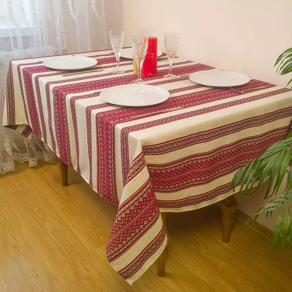 Лляна скатертина з орнаментом Червоний, 180х145 см, Без серветок