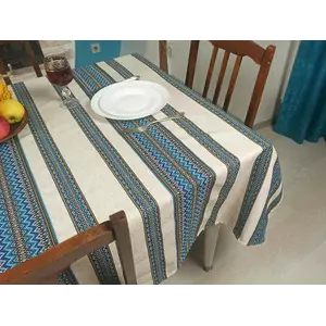 Лляна скатертина з орнаментом Синій, 220х145 см, + 6 серветок