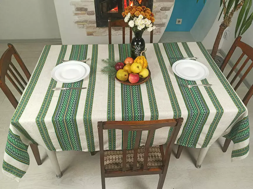 Лляна скатертина з орнаментом Зелений, 110x145 см, Без серветок