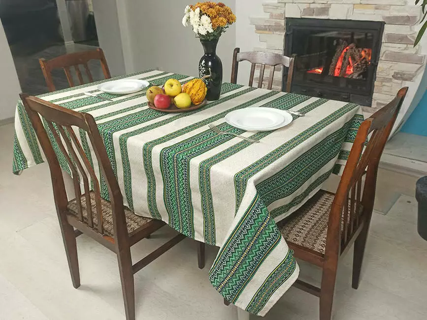 Лляна скатертина з орнаментом Зелений, 220х145 см, + 6 серветок