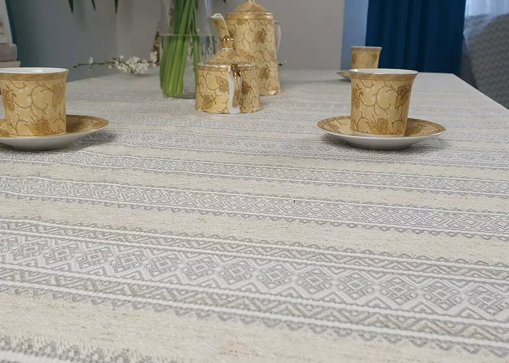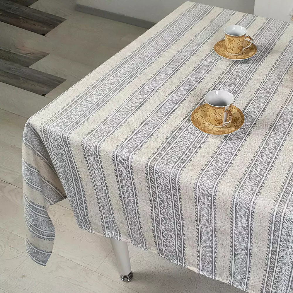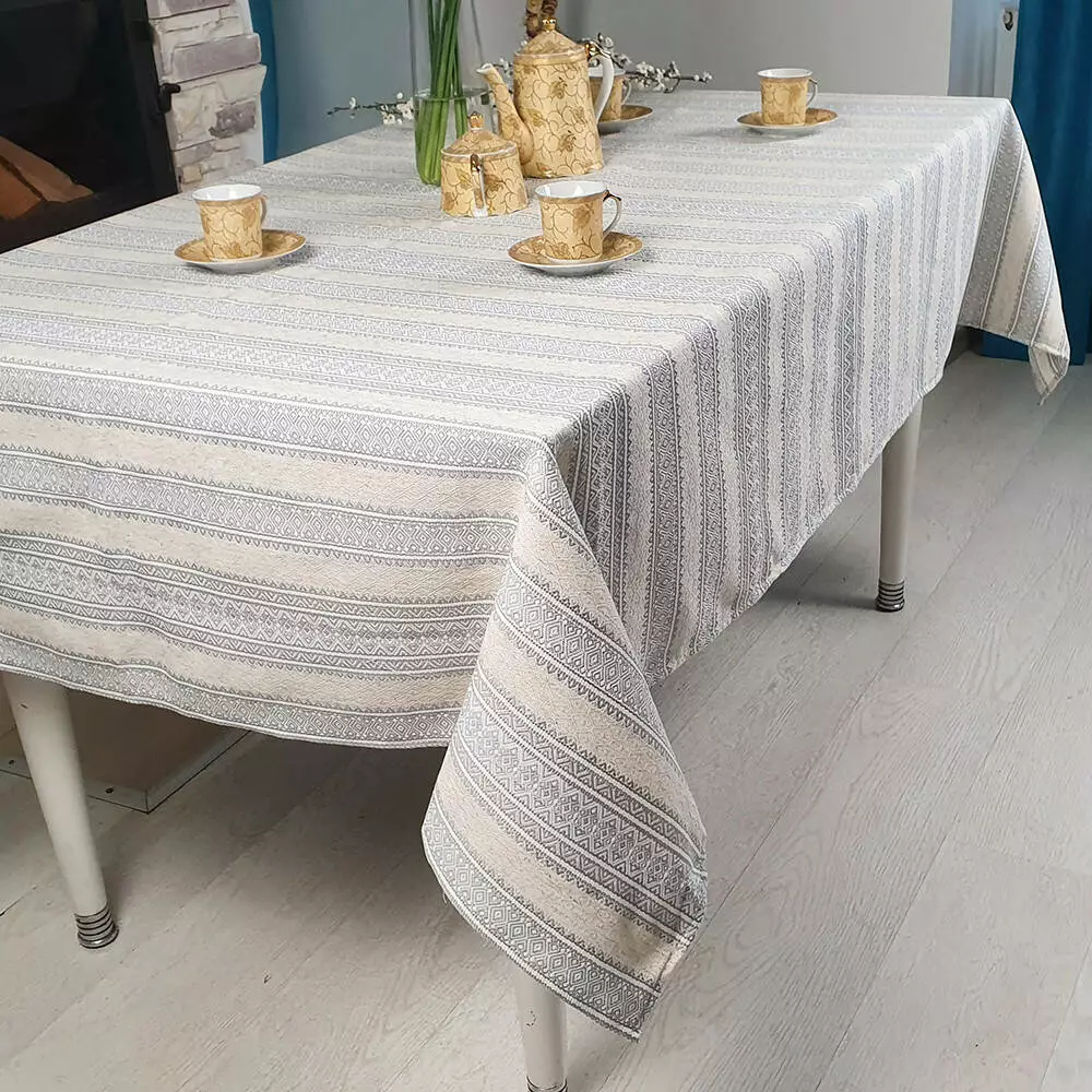 Лляна скатертина з сірим орнаментом