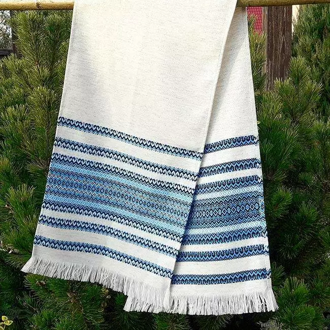 По краях ТКАНИЙ синьо-чорний орнамент,