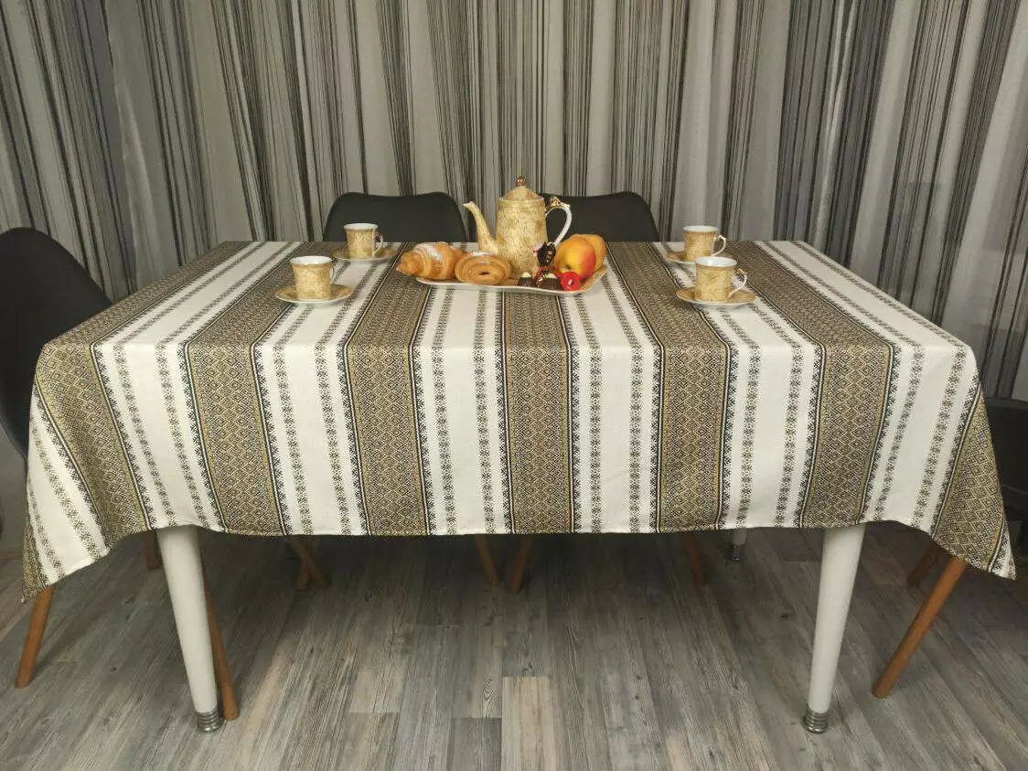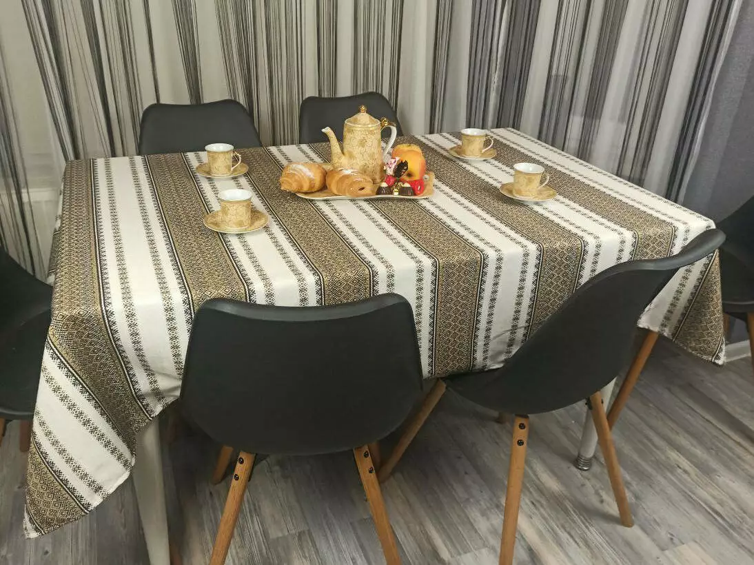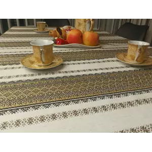 Новорічна скатертина з народним орнаментом 134x145 см, + 6 серветок, Коричневий