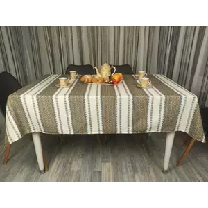 Новорічна скатертина з народним орнаментом 134x145 см, Скатертина, Коричневий