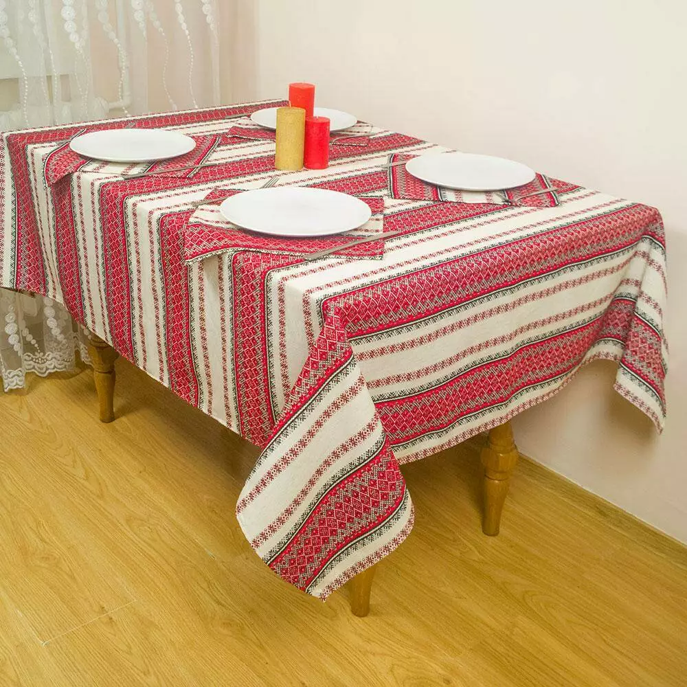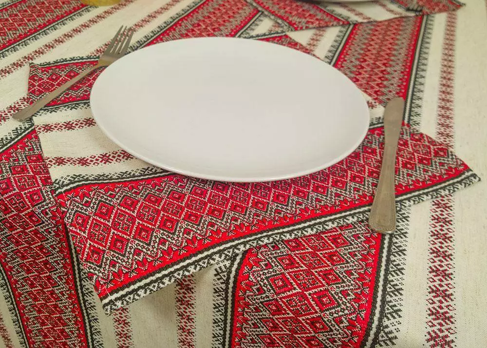 Новорічна скатертина з народним орнаментом 180х145 см, + 6 серветок, Червоний