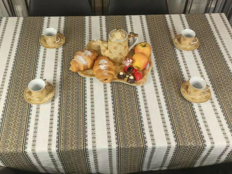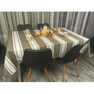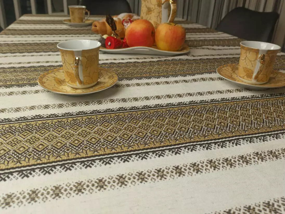 Новорічна скатертина з народним орнаментом 180х145 см, + 6 серветок, Коричневий