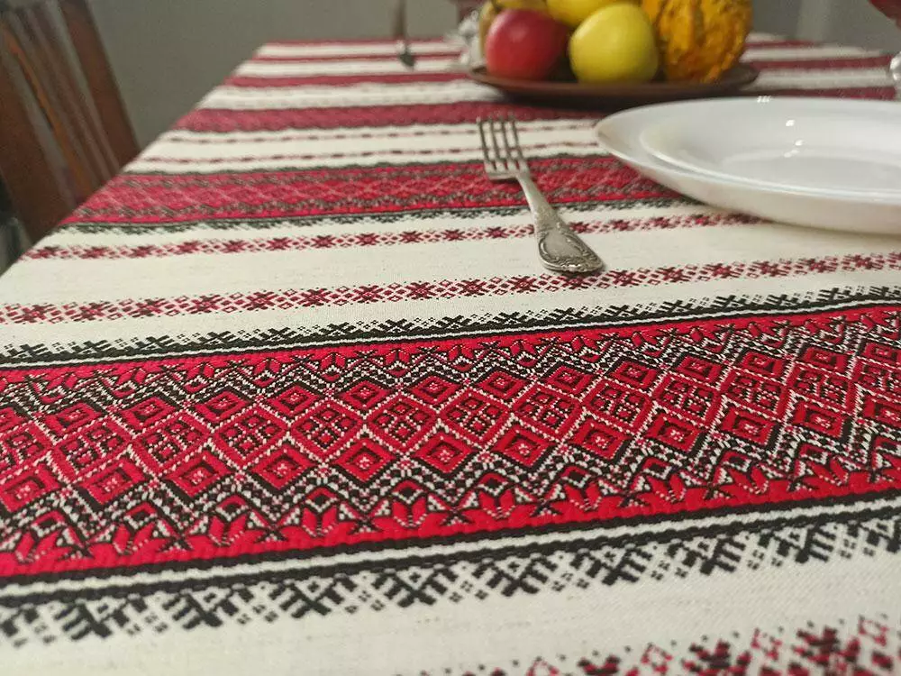 Новорічна скатертина з народним орнаментом 226х145 см, Скатертина, Червоний