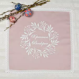 Столешня великодня прикрасить ваш святковий стіл. В основі щільне полотно, обшите якісним мереживом. Посередині машинна вишивка гладдю.
