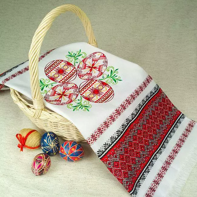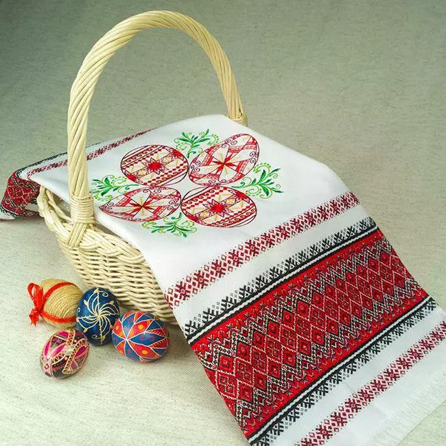 Цей яскравий рушничок буде прикрашати вашу пасхальну корзинку.