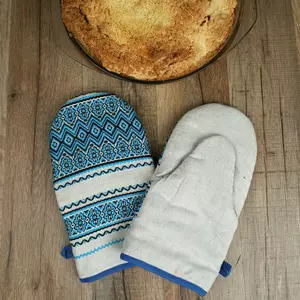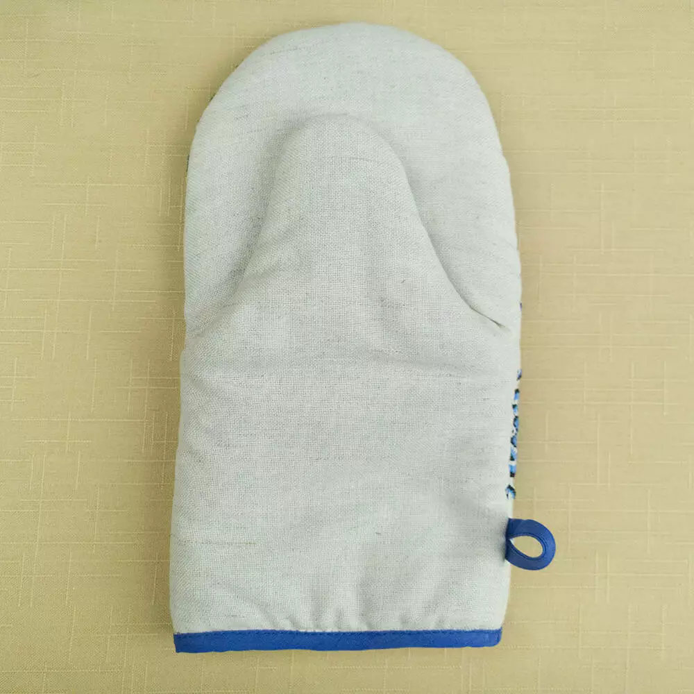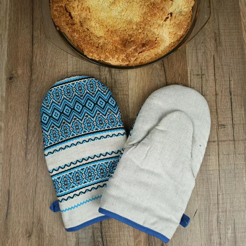 Льняная прихватка-варежка для кухни непременно станет верным помощником хозяйки! Достаточно плотная ткань и мягкий наполнитель позволяют прихватке долго служить Вам и оберегать Ваши ладони от перегревания во время готовки. Этнический орнамент добавит в интерьер народных нот. Всегда на своем месте этот кухонный аксессуар будет благодаря петельке.