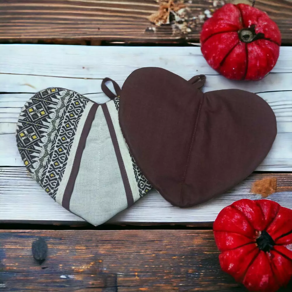 Красочные прихватки для кухни "Сердце"