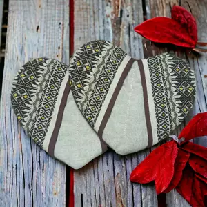 Эта сердцеподобная прихватка непременно пригодится на кухне заботливой хозяйки! Особенно если кухне свойственны черты этно стиля. Мягкий наполнитель между двух слоев износостойкой, хотя и тонкой ткани позволяет этому аксессуару длительное время выдерживать трудовые будни. Прихватка удобна в использовании , поскольку запросто складывается пополам по продольной строчке. Благодаря текстильной петельке она всегда будет около варочной поверхности.