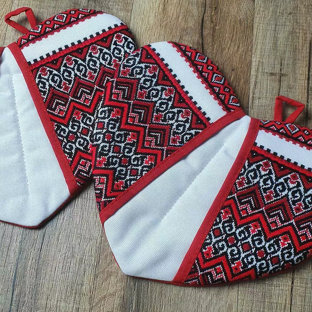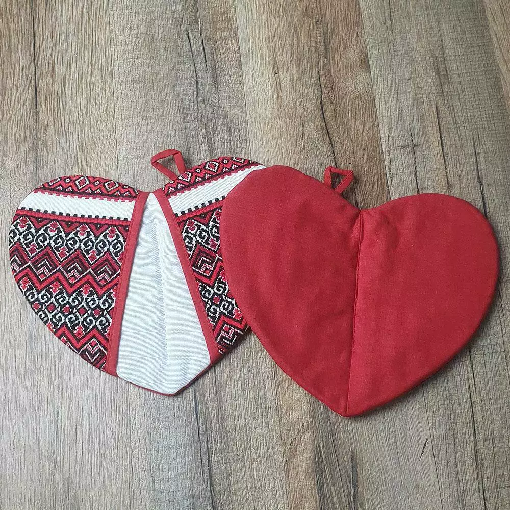 Прихватки на кухню "Сердце" с орнаментом