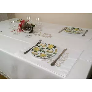 Стирайте скатерть с вышивкой нейтральными моющими средствами при максимальной температуре 40 градусов |