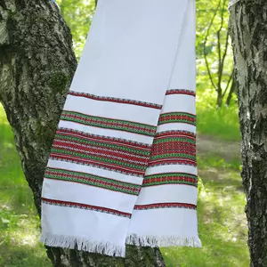 Традиційний червоний рушник, який широко використовується в українських обрядах.