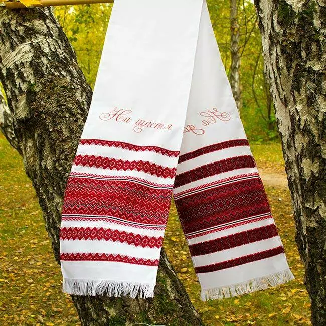 Весільним рушником прикрашають ікони, якими благословляють молодят батьки. Коровай завжди несуть на вишитому рушнику. Молодим кладуть весільний рушник "На щастя, на долю" під ноги, і звичайно ж використовують весільний рушник для зв'язування рук.