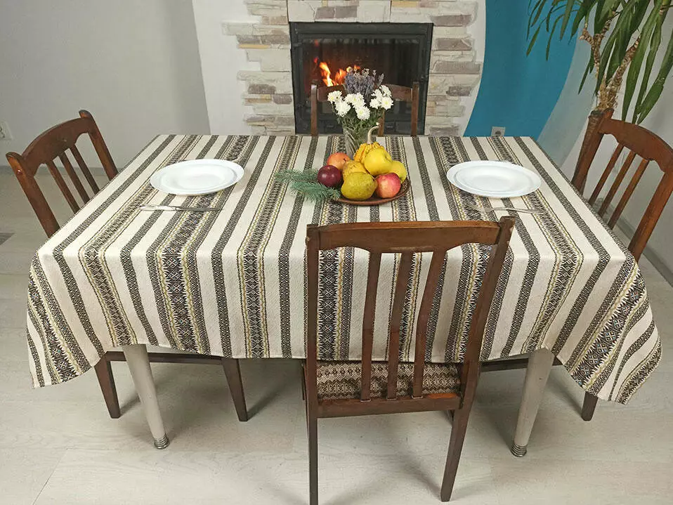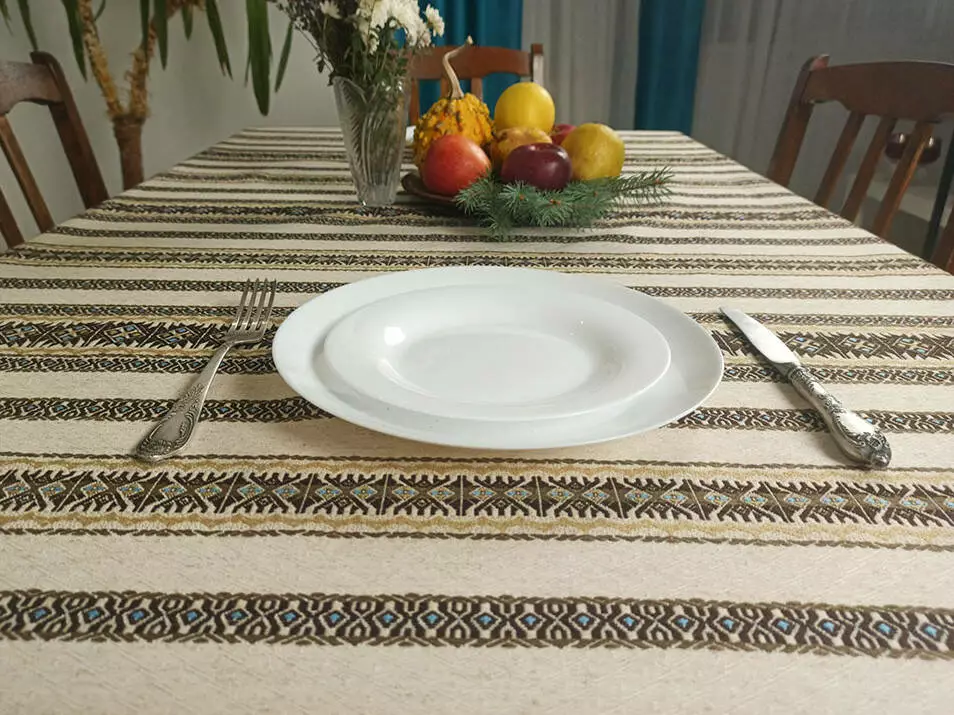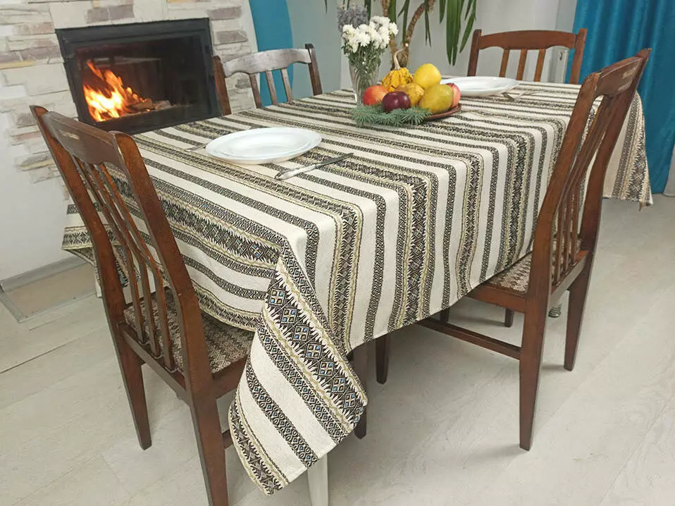 У нас большой выбор тканых вышитих скатертей с украинским орнаментом.