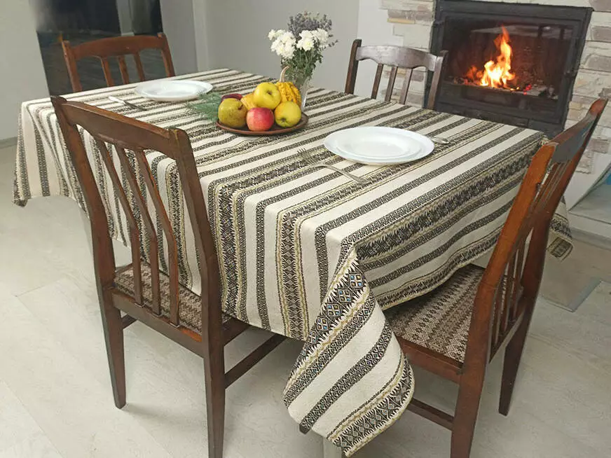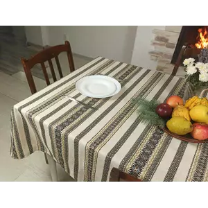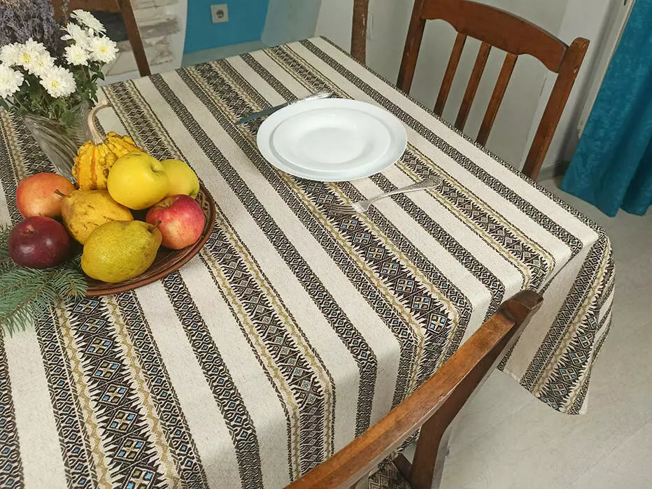 Скатертина на кухню лляна з орнаментом коричнева Коричневий, 215х145 см, + 6 серветок