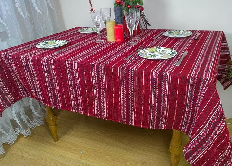 Скатертина вишита на стіл від 345 грн 34, Етнічні, 182х145 см, + 6 серветок, бордо-білий, 34
