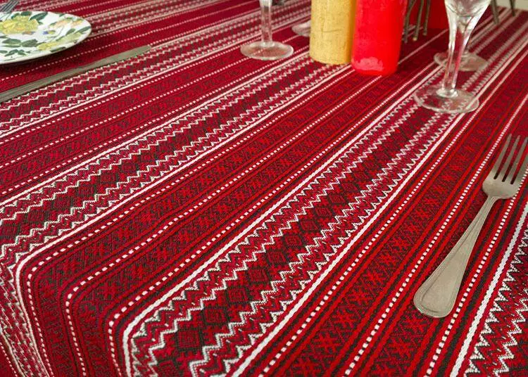 Скатертина вишита на стіл від 345 грн 34, Етнічні, 228х145 см, Скатертина, бордо-білий, 34