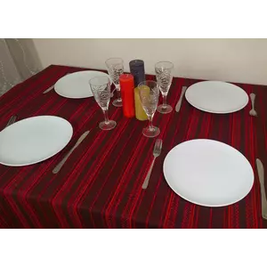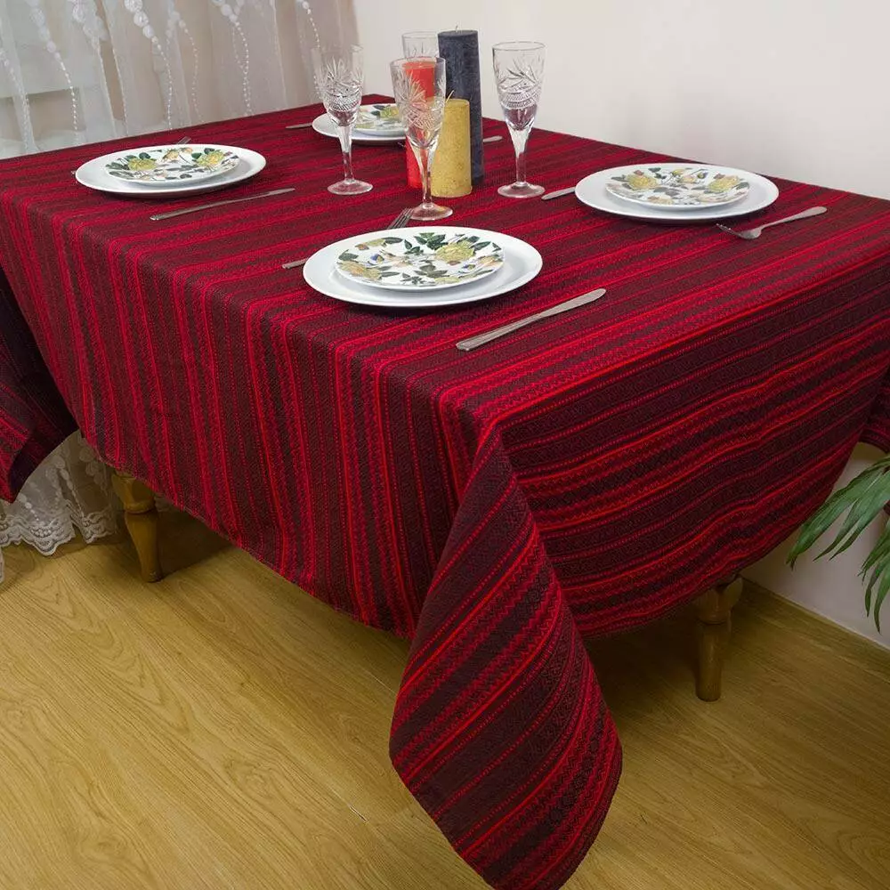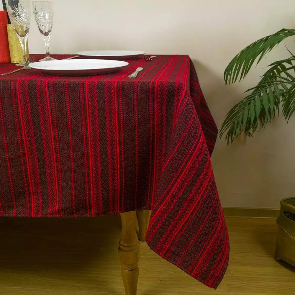 Скатертина вишита на стіл від 375 грн 135х145 см, + 6 серветок, бордо-червоний