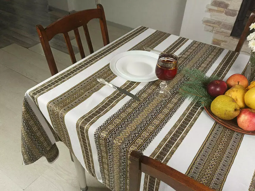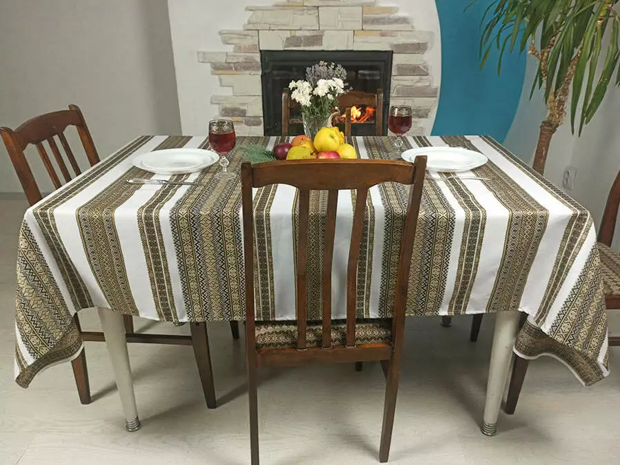 Скатертина з народним орнаментом 140х145 см, Скатертина, Коричневий