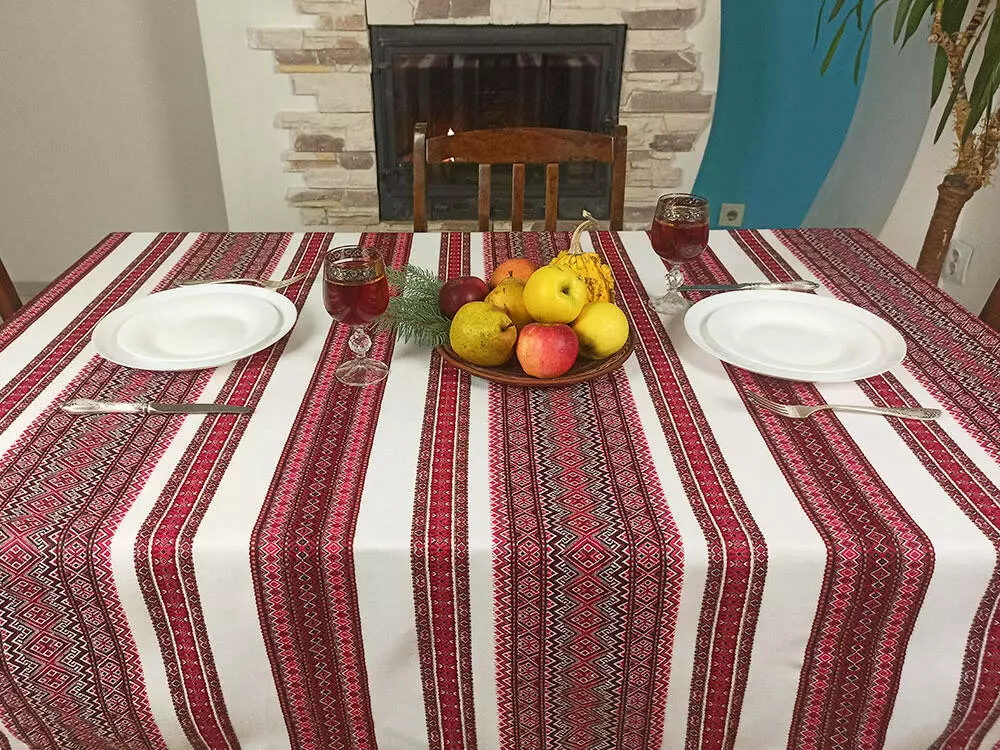 Скатертина з народним орнаментом 190х145 см, Скатертина, Червоний