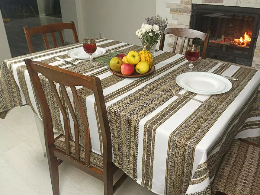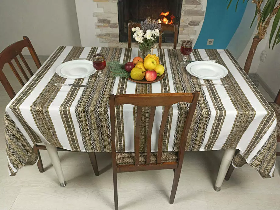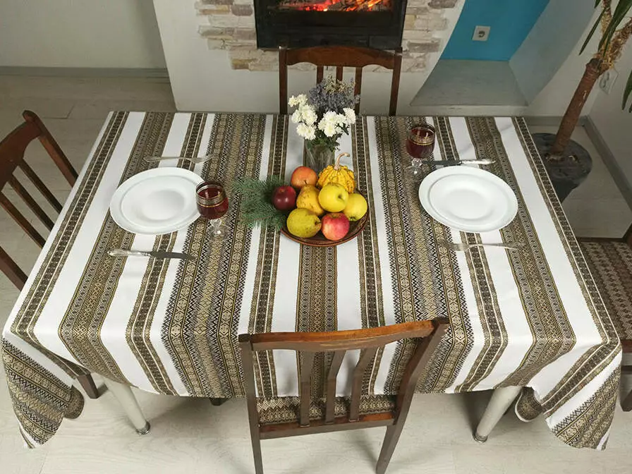 Скатертина з народним орнаментом 190х145 см, Скатертина, Коричневий