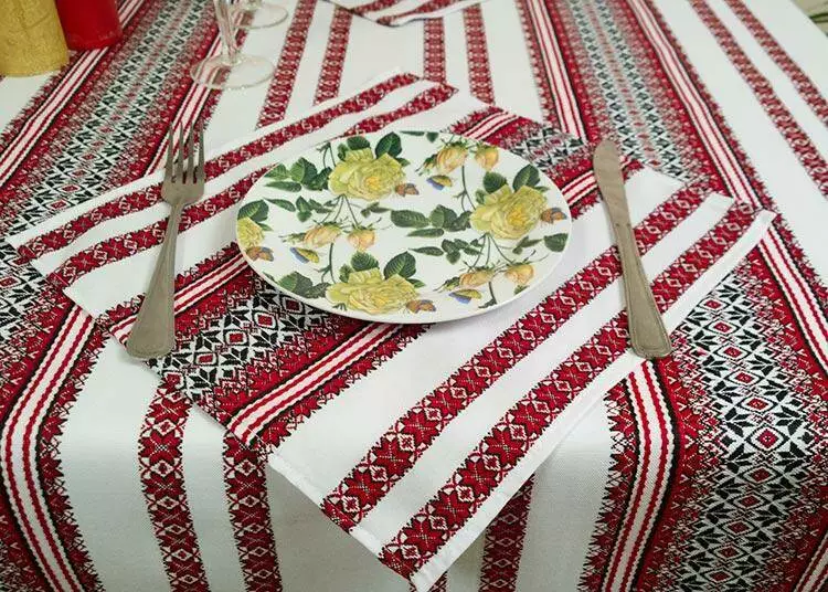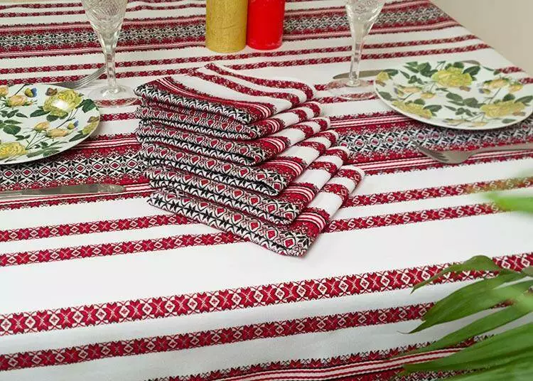 Скатертина з українською вишивкою 144, 6 + 6 серветок, 180х145 см, Червоний