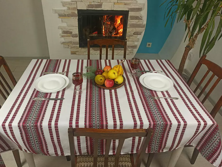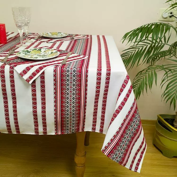 Скатертина з українською вишивкою 144, 6 + 6 серветок, 215х145 см, Червоний