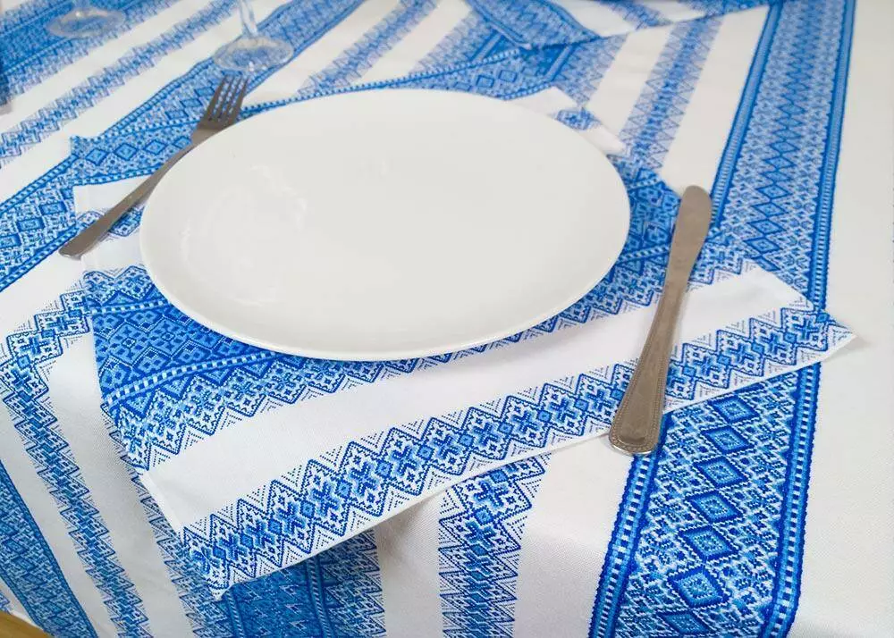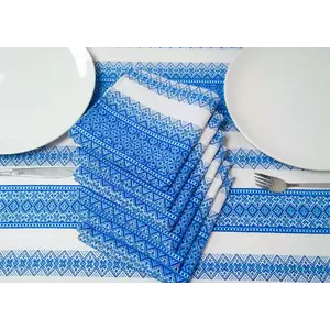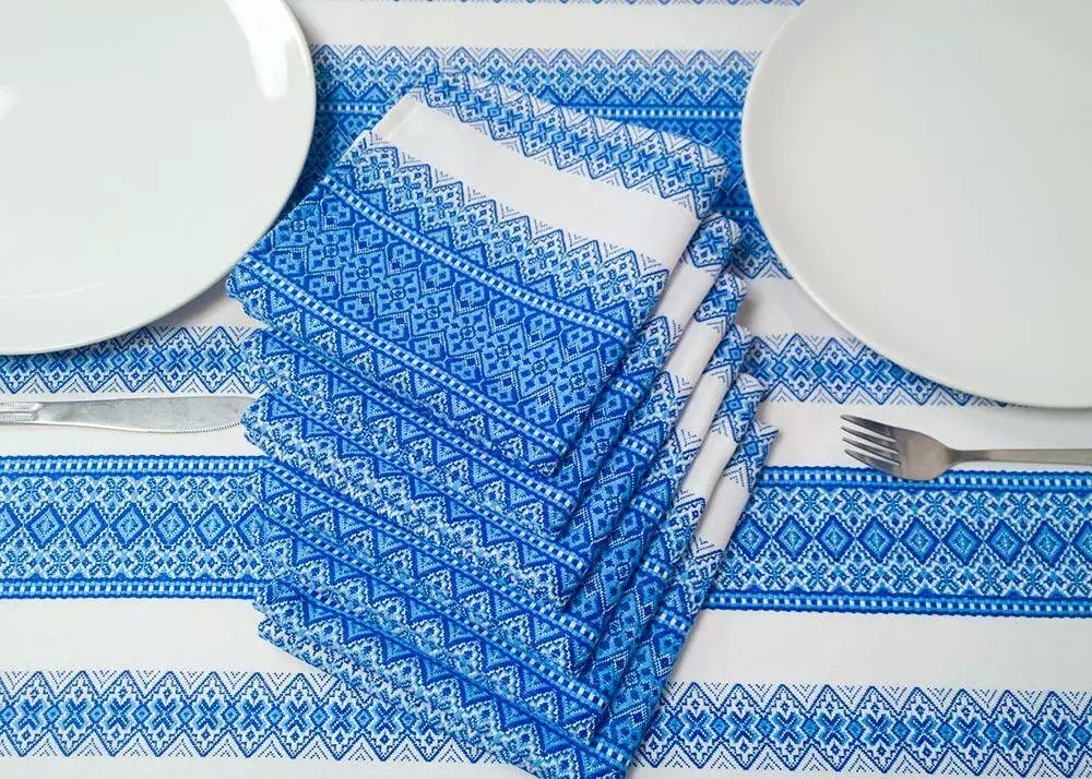 Святкова новорічна скатертина з вишивкою Блакитний, 115х145 см, + 6 серветок