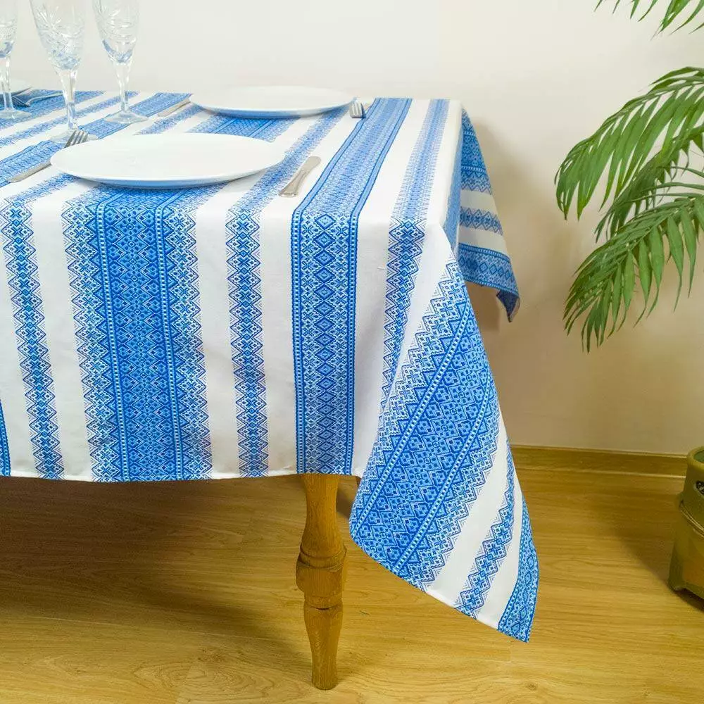 Святкова новорічна скатертина з вишивкою Блакитний, 115х145 см, Без серветок