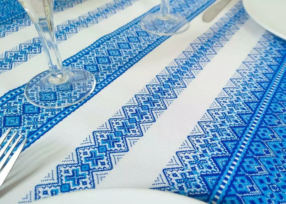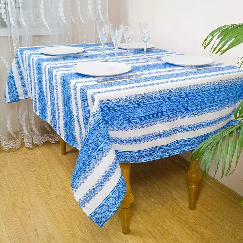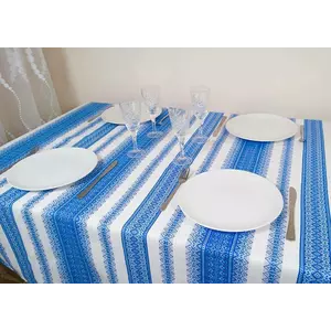 Святкова новорічна скатертина з вишивкою Блакитний, 190х145 см, Без серветок