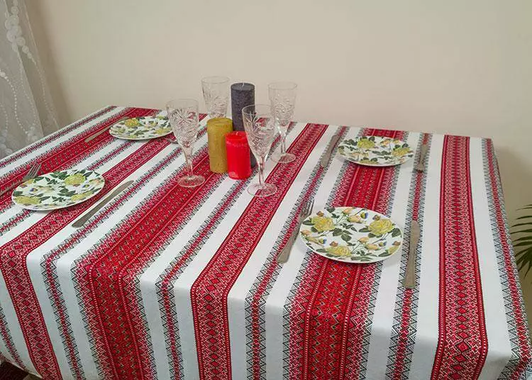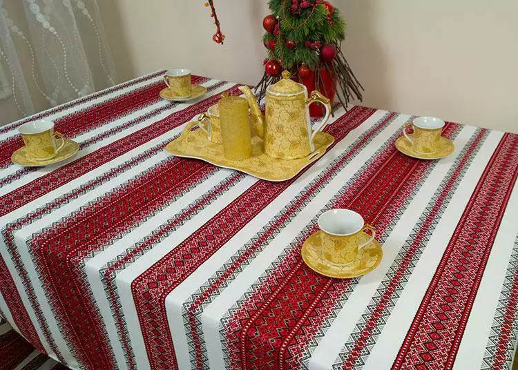 Святкова новорічна скатертина з вишивкою Червоний, 230х145 см, Без серветок