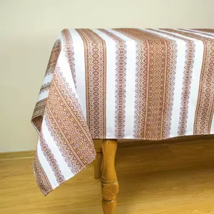Святкова новорічна скатертина з вишивкою Коричневий, 115х145 см, + 6 серветок