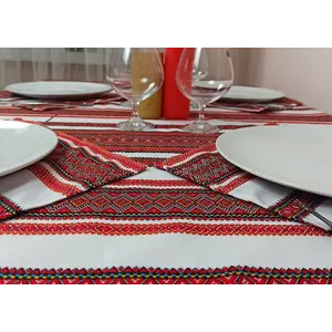 Святкова ткана скатертина з орнаментом + 6 серветок, 190х145 см, Червоний