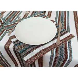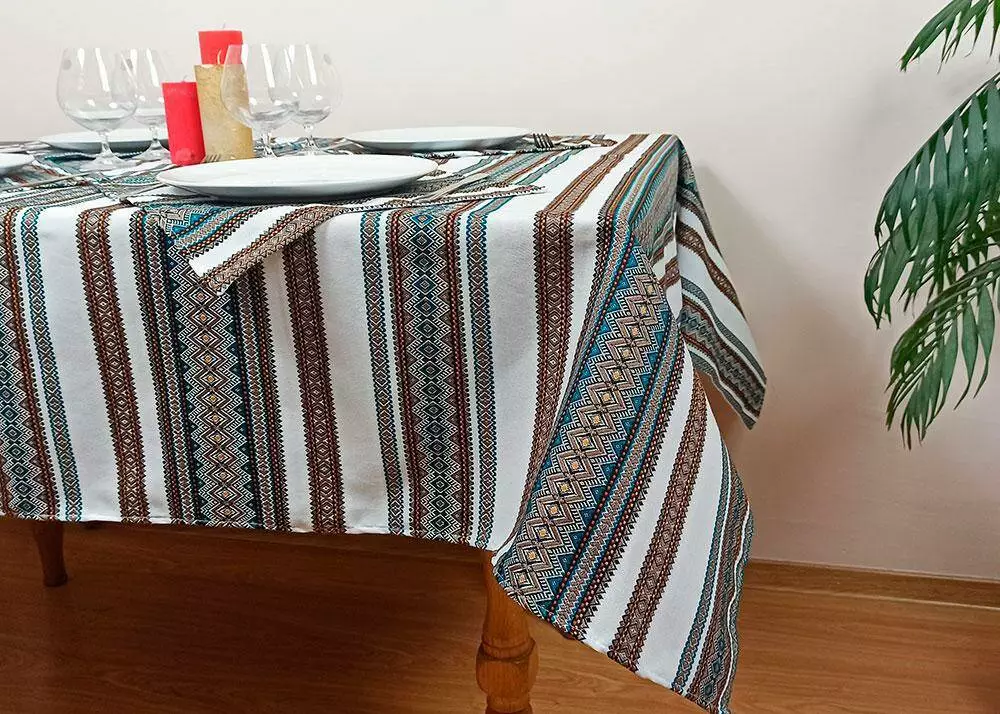 Святкова ткана скатертина з орнаментом + 6 серветок, 190х145 см, Синій