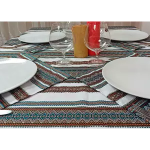 Святкова ткана скатертина з орнаментом + 6 серветок, 230х145 см, Синій