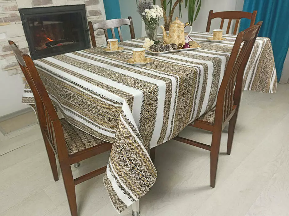Святкова ткана скатертина з орнаментом + 6 серветок, 245х145 см