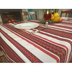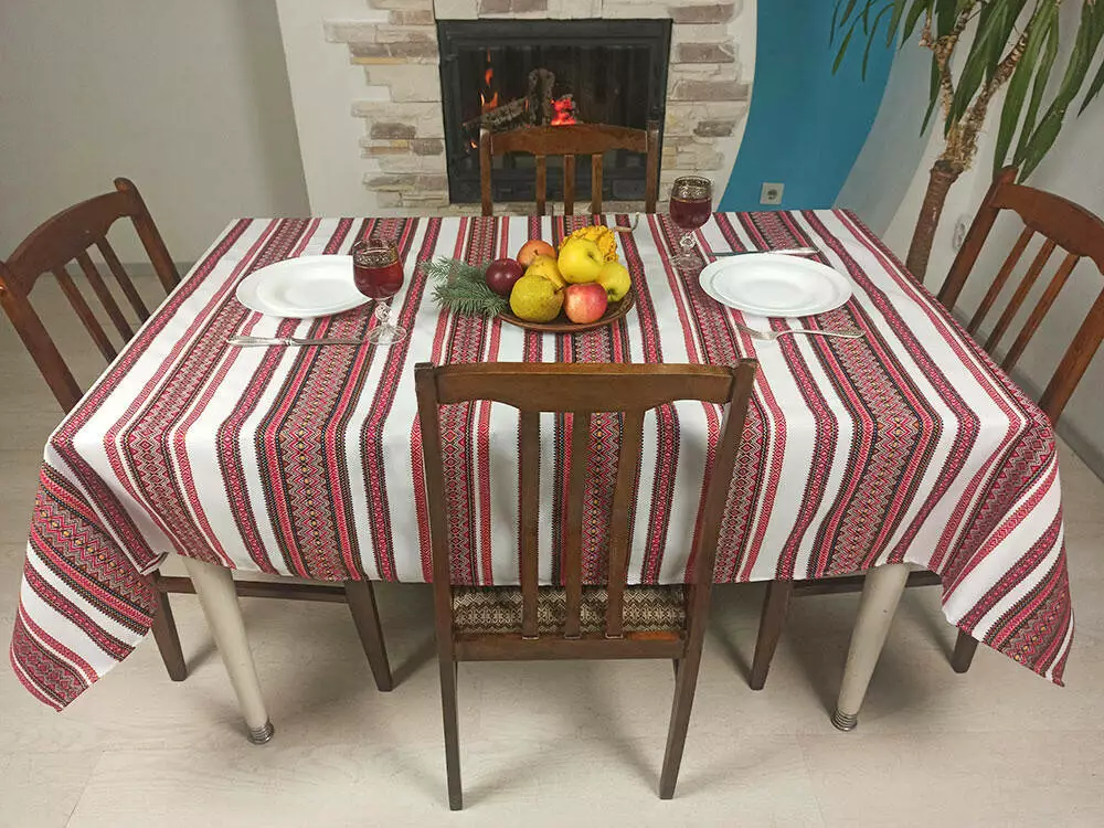 Святкова ткана скатертина з орнаментом Без серветок, 190х145 см, Червоний
