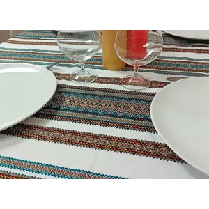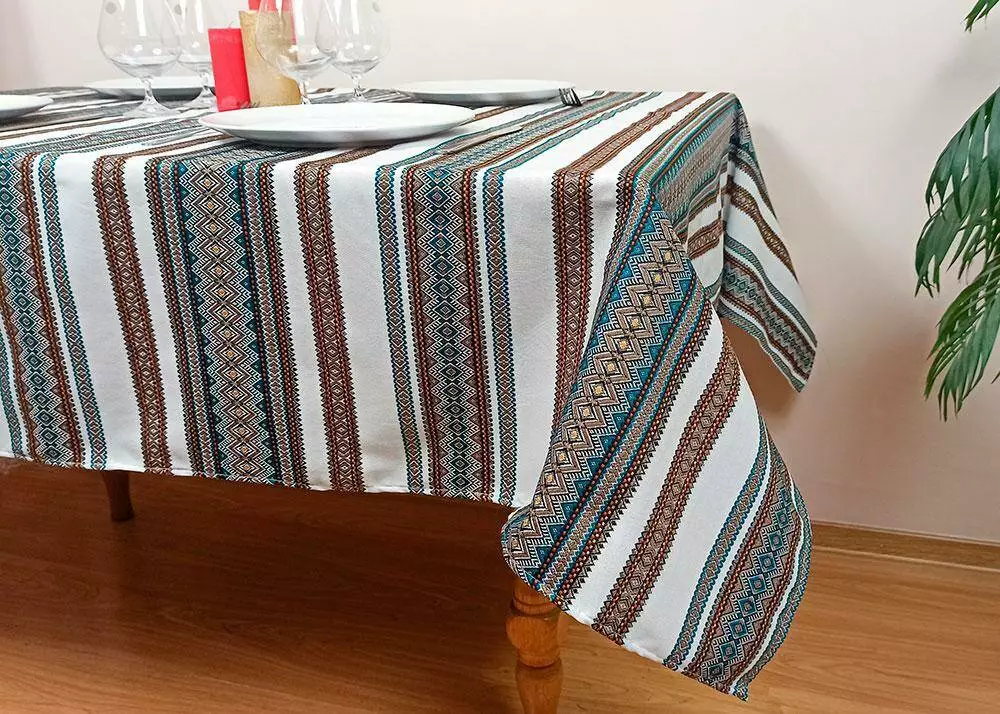Святкова ткана скатертина з орнаментом Без серветок, 190х145 см, Синій