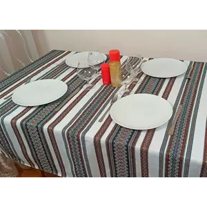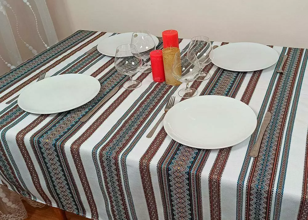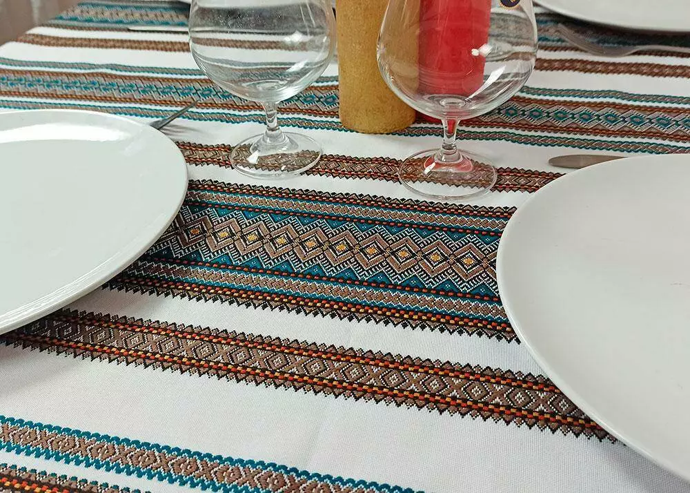 Святкова ткана скатертина з орнаментом Без серветок, 230х145 см, Синій