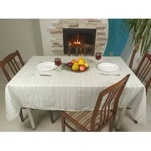 Ткана скатертина з сірим орнаментом 236х145 см, + 6 серветок
