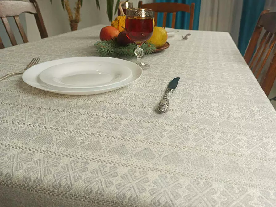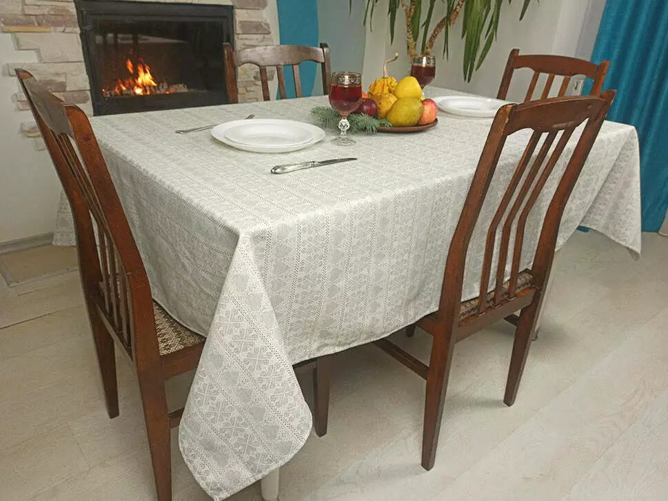 Ткана скатертина з сірим орнаментом 236х145 см, Скатертина