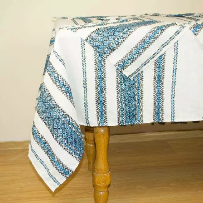 Українські скатертини 34, Етнічні, 198х145 см, + 6 серветок, синій, 34